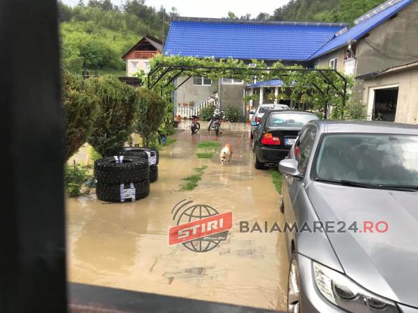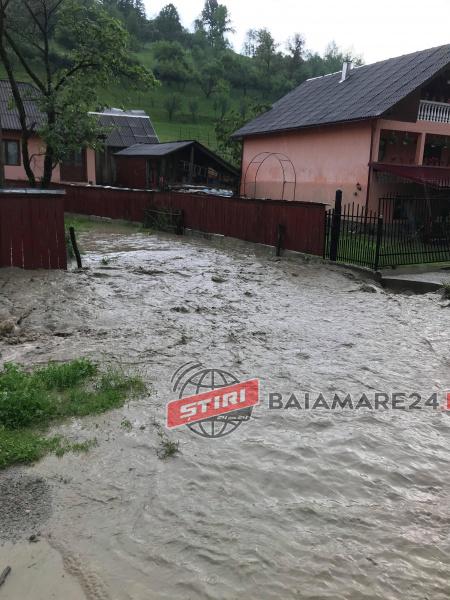FOTO / VIDEO EXCLUSIV – COD ROSU – Viitură la Rozavlea pe Valea Spinului. Curți inundate, grădini și drumuri inundate