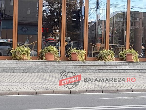Un cititor al site-urilor noastre ne-a trimis astăzi câteva fotografii realizate în jurul orei 13 în Baia Mare. De câteva săptămâni, prin Hotârârea Comitetului Județean pentru Situații de Urgență Maramureș s-a decis, printre altele, și ÎNCHIDEREA restaurantelor, cafenelor ÎN INTERIOR.