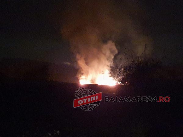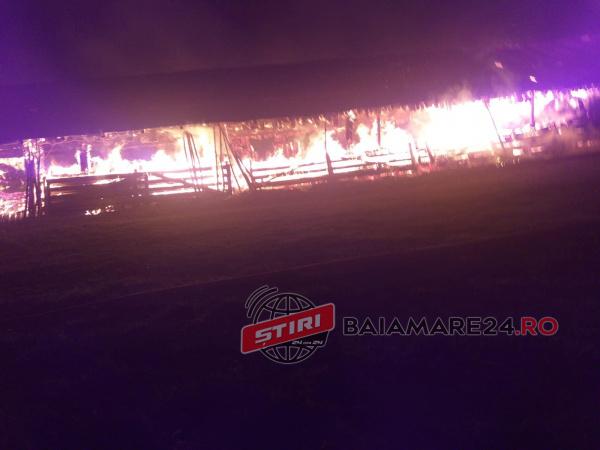 Incendiu violent la Crăciunești. Flăcările au cuprins un hambar plin cu baloți de fân. Pompierii sigheteni s-au deplasat la fața locului, însă intervenția este extrem de dificilă din cauza flăcărilor uriașe.
