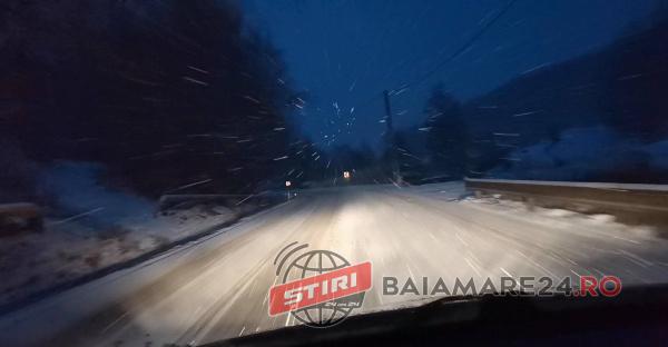 Stratul de zapada masoara pana la 39 cm la statia meteo Iezer si 1 cm in Baia Mare. Zapada framantata cu grosimea de pana la 1 cm se gaseste depusa pe DN18 in Pasul Prislop (intre km 140 si km 180) si pe Dealul Hera.
