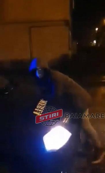 EXCLUSIV VIDEO: Un tânăr s-a aruncat de trei ori pe capota autospecialei de la Jandarmeria Baia Mare simulând un accident. A fost imobilizat și dus la secție