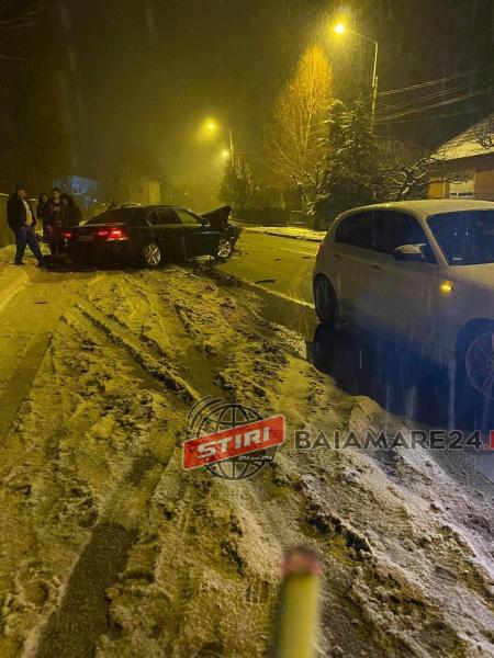 Două accidente rutiere s-au produs azi-noapte pe raza municipiului Baia Mare după ce a început să ningă, iar carosabilul a devenit alunecos. Totodată, o altă cauză complementară a producerii accidentelor a fost viteza.