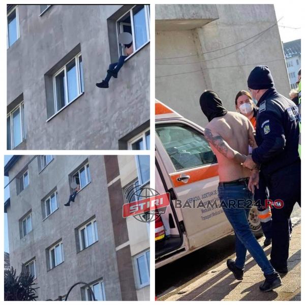 Ajunși la fața locului polițiștii au identificat un tânăr de 26 ani, care stătea pe pervazul geamului locuinței, în poziția menționată și fără a amenința sau fără a face vreo solicitare.