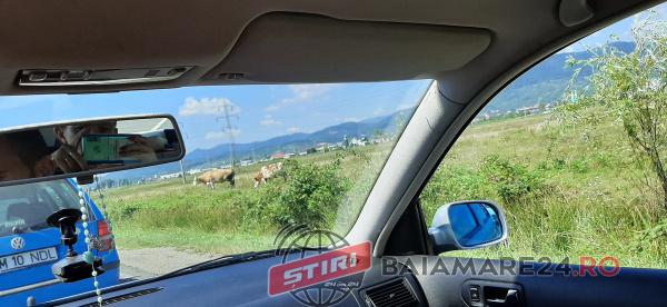 Poliția oare chiar nu vede ce se întâmplă la doi pași de Baia Mare? A cui sunt animalele și cine răspunde pentru un eventual incident rutier cauzat de ele? Dar dacă se produce o tragedie?