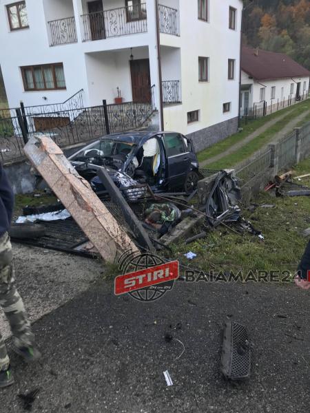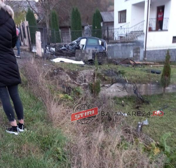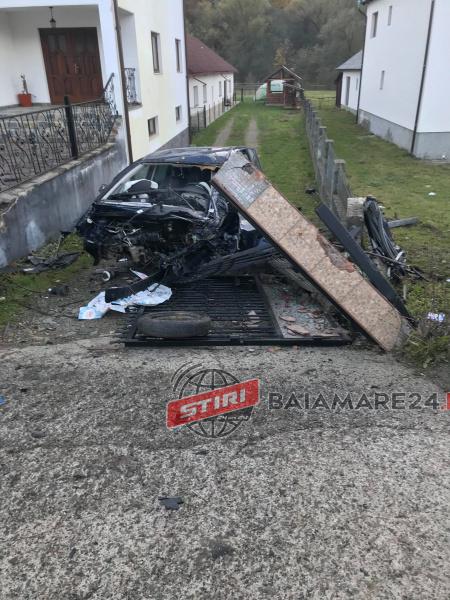 Cel mai porbabil din cauza vitezei excesive a părăsit partea carosabilă, a distrus două porți și patru stâlpi de susținere și s-a oprit în curtea unui localinic.