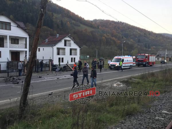 În urma impactului violent mașina pur și simplu s-a dezmembrat, motorul fiind aruncat la 50 metri față de vehicul.